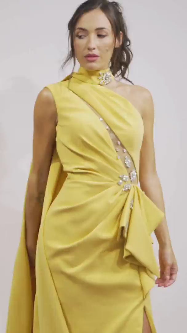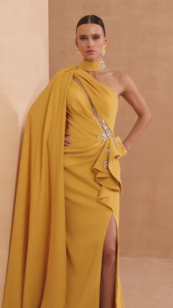Eleve su presencia nocturna con el MNM Couture V02033, una fusión magistral de elegancia y diseño moderno. Confeccionado en crepúsculo suntuoso, este vestido largo y ajustado a la columna contornea graciosamente su silueta, mientras que los exquisitos volantes drapeados añaden una fluidez cautivadora a cada movimiento. El sofisticado escote de un hombro y el corte sin mangas revelan un equilibrio sereno entre la atracción y la refinación, perfectamente complementado por una abertura atrevida que susurra confianza con cada paso. Diseñado para ocasiones de alta costura y la distinguida madre de la novia, este vestido promete comodidad sin costuras con una discreta cremallera trasera. Experimente la atracción de la artesanía acabada a mano que la transforma en el epítome del lujo atemporal.