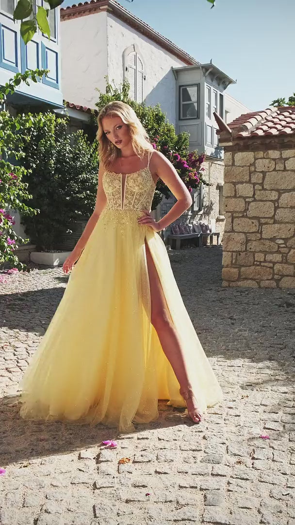 Pise el escenario con el Alyce 61513, un exquisito vestido de noche que combina sin esfuerzo la elegancia atemporal con la sofisticación moderna. Confeccionado en delicado tul, esta silueta en forma de A se desliza graciosamente, acentuada por un elegante corsé con cordones en la espalda que esculpe su figura con refinada atracción. La larga y fluida cola y la sutil abertura añaden un toque de drama y movimiento, mientras que el reluciente encaje perlado en el corpiño captura la luz, creando un brillo encantador. Diseñado con delgados tirantes de espagueti y corte sin mangas, este vestido ofrece tanto comodidad como una silueta favorecedora. Perfecto para el baile de graduación o elegantes veladas, Alyce 61513 le invita a encarnar la confianza grácil y la belleza inolvidable.