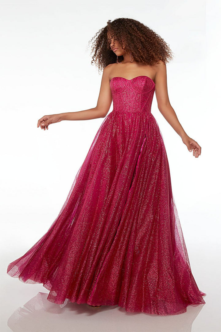 Eleve su noche con el Alyce 61601 de Alyce, una impresionante silueta en forma de A elaborada en tela brillante que captura fácilmente la luz con cada movimiento. Este largo vestido sin tirantes presenta un escote corazón que acentúa su escote, mientras que la espalda con cordones de corsé ofrece un ajuste a medida que halaga su figura con elegancia refinada. Pliegues delicados y una abertura grácil añaden un drama sutil, convirtiendo este vestido en un faro de sofisticación en cualquier evento formal. Diseñado para encarnar romance y gracia, el Alyce 61601 le transforma en el centro de la noche, irradiando confianza y belleza atemporal.