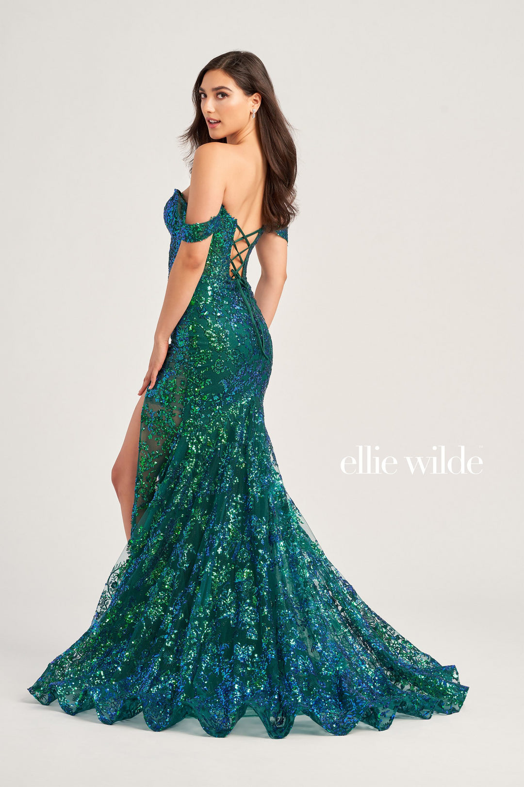 Pise el escenario con el Ellie Wilde EW35014, una obra maestra diseñada para elevar su conjunto de noche. Este largo y ajustado vestido de sirena brilla con intrincados detalles de lentejuelas, siguiendo cada curva para crear una silueta impresionante. El escote corazón y las delicadas mangas fuera del hombro exudan elegancia romántica, mientras que la espalda con cordones de corsé ofrece un ajuste personalizado que mejora su postura y confianza. Una elegante cola fluye sin esfuerzo detrás de usted, y una atrevida abertura alta agrega un toque moderno, permitiéndole moverse con una cautivadora atracción. Diseñado para esos momentos inolvidables, este vestido de Ellie Wilde lo transforma en el epítome de sofisticación y glamour.