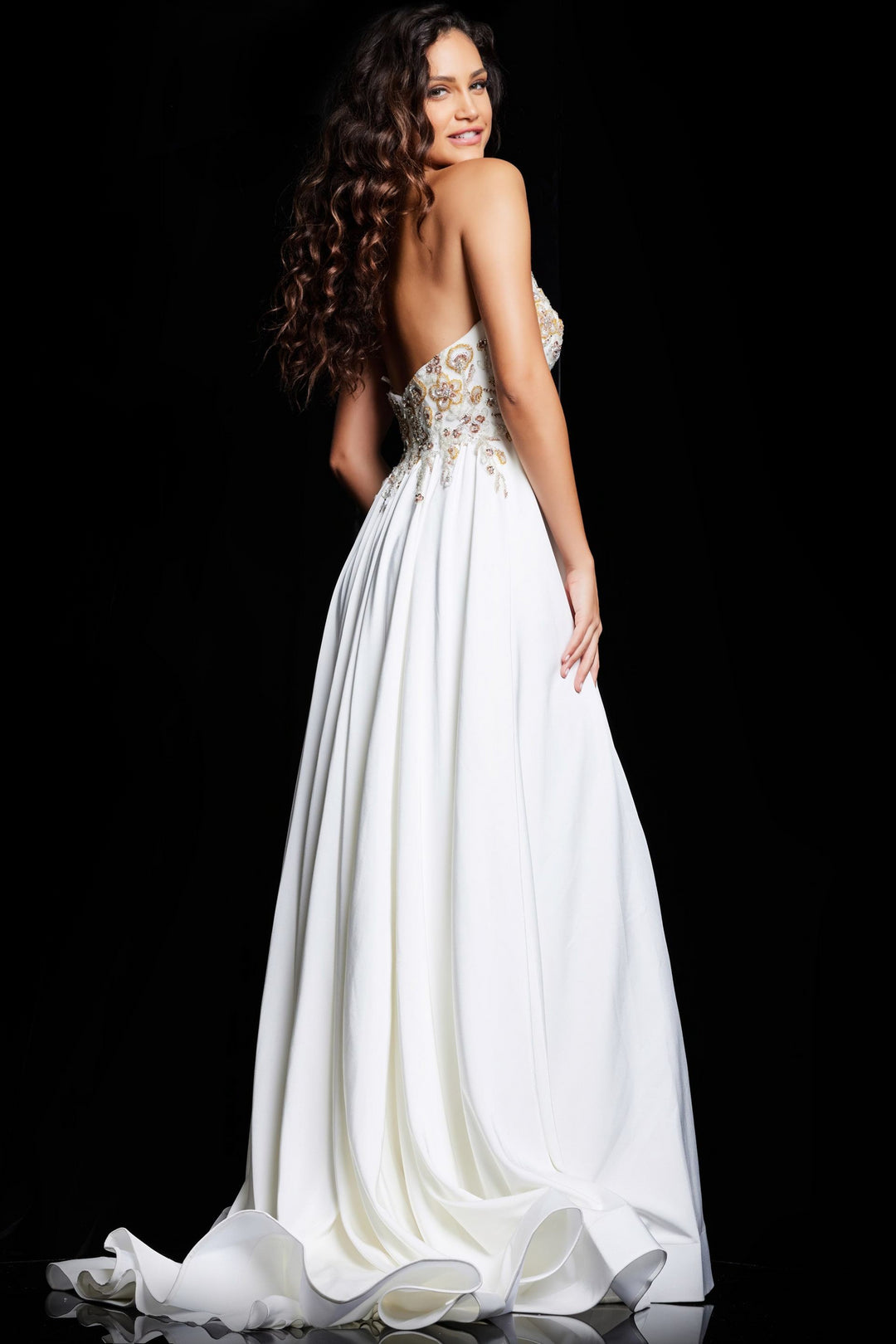Sumérgete en la elegancia atemporal con el Jovani 23937, una obra maestra diseñada para transformar tu noche en un evento inolvidable. Este vestido largo de crepé sin tirantes contornea graciosamente con un corsé estructurado, resaltando tu silueta mientras el escote en V añade un toque de sofisticación seductora. La falda de línea A fluye sin esfuerzo, presentando una elegante abertura y una cola que llama la atención con cada paso. Perfecto para una ocasión nocturna o como un distinguido vestido de madre de la novia, su refinado cierre de cremallera trasero garantiza un ajuste impecable. Experimenta el abrazo lujoso de esta creación de Jovani y deja que tu presencia cautive la habitación con un glamour discreto.