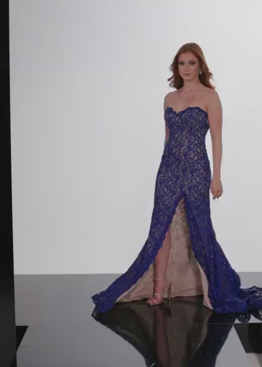 Sumérgete en la sofisticación atemporal con el vestido de noche Jovani 26051, una obra maestra diseñada para captar la atención en cualquier evento elegante. Confeccionado en encaje delicado, este vestido de columna ajustado esculpe graciosamente tu silueta, mientras que el escote corazón y el diseño sin tirantes revelan la cantidad justa de atractivo. La larga y fluida cola junto con una abertura atrevida añaden movimiento y drama, asegurando que cautives desde cada ángulo. Terminado con una discreta cremallera en la espalda, este vestido combina un ajuste impecable con un estilo refinado. Experimenta el lujo de la meticulosa artesanía de Jovani mientras elevas tu look de noche o de graduación con un glamour y compostura innegables.