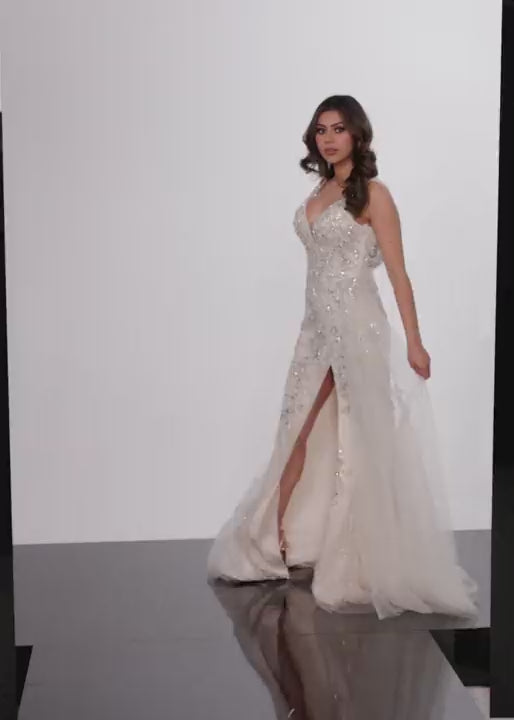 Ingresa al centro de atención con el Jovani 39105, una obra maestra creada para noches inolvidables. Este vestido largo ajustado te envuelve en tul bordado delicado, creando una textura ligera y etérea que se mueve con gracia con cada paso. La abertura atrevida y la espalda baja seductora amplifican tu confianza, mientras que el elegante escote en V y las correas delgadas enmarcan tu silueta con sofisticación refinada. Diseñado para cautivar, este vestido de la colección Otoño 2023 de Jovani promete una presencia impresionante en cualquier evento elegante. Experimenta la armonía perfecta entre la artesanía impecable y el estilo lujoso que transforma tu noche en una declaración de puro glamour.