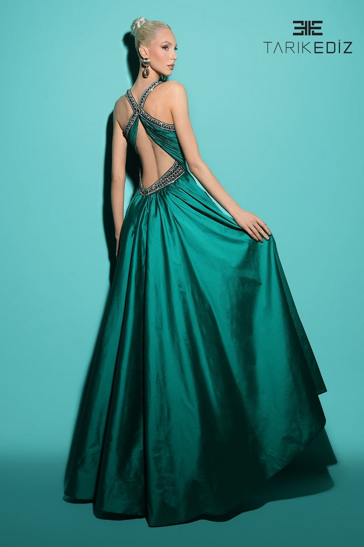 Experimente el encanto del Tarik Ediz 98406, un lujoso vestido de noche de Mikado diseñado para elevar su presencia en cualquier ocasión especial. Esta impresionante silueta en forma de A esculpe graciosamente su figura con un corpiño fruncido y un seductor escote en V, fusionando sin esfuerzo la sofisticación con el encanto moderno. Las delicadas correas conducen a una espalda baja, añadiendo un elemento de sensualidad discreta. Fluyendo sin esfuerzo, la sobrefalda revela una abertura sutil, permitiéndole moverse con confianza y gracia. Elaborado con meticulosa atención al detalle, este vestido largo le invita a encarnar la elegancia y hacer una declaración inolvidable en cada paso que dé.