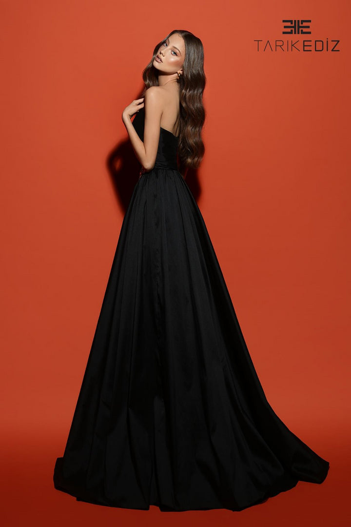 Sumérgete en una noche de elegancia incomparable con el Tarik Ediz 98496, una obra maestra diseñada para elevar tu guardarropa formal. Este largo y ajustado vestido de noche, confeccionado en un suntuoso tafetán, encarna la sofisticación a través de su hábil drapeado y sutiles fruncidos que acarician tu silueta. El escote en V sin tirantes introduce un atractivo grácil, mientras que una atrevida abertura añade un toque de glamour moderno. Perfecto para ocasiones distinguidas o como un refinado vestido de madre de la novia, su elegante cierre de cremallera en la espalda garantiza un ajuste impecable. Deja que la textura lujosa y la meticulosa artesanía de Tarik Ediz te envuelvan en una belleza atemporal, haciendo que cada momento sea inolvidable.