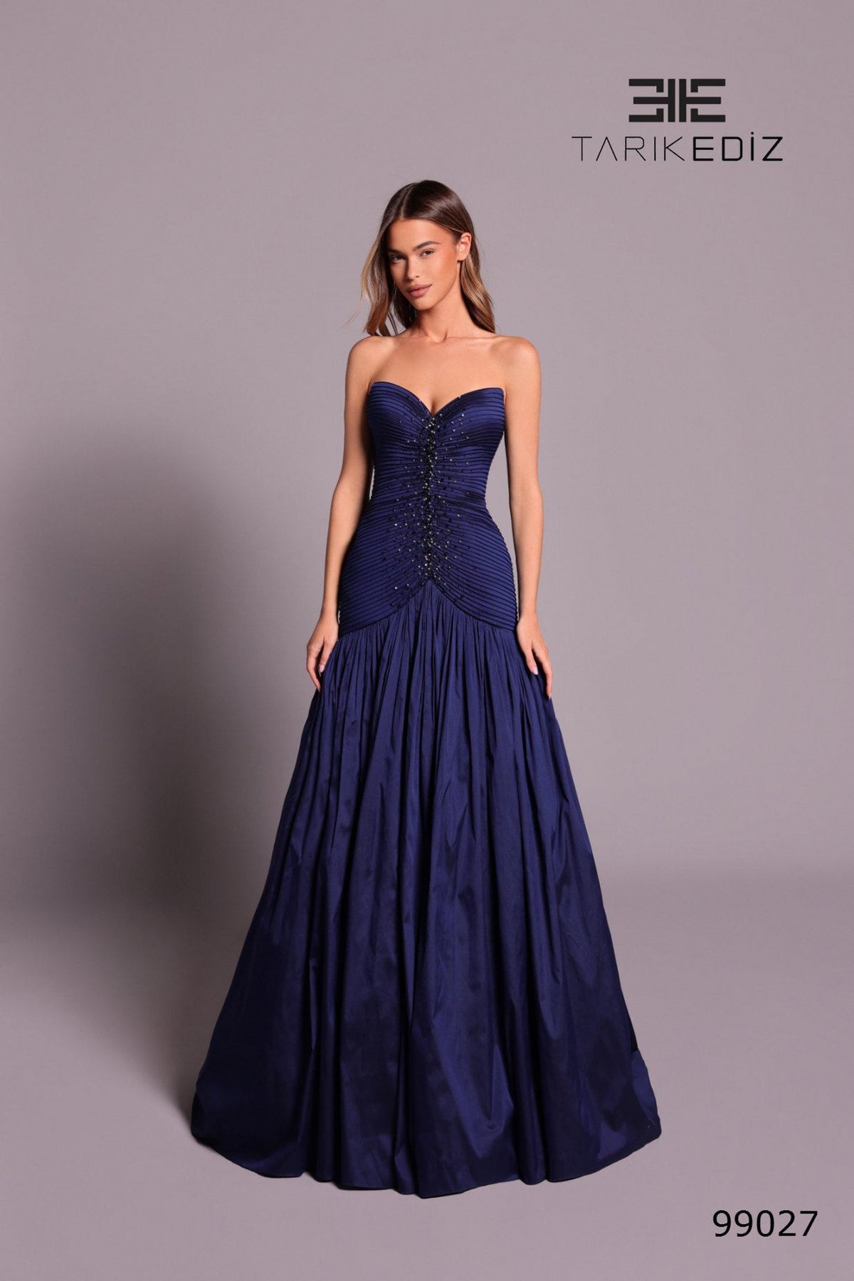 Step into the spotlight with the Tarik Ediz 99027, a stunning fit and flare evening dress that redefines elegance for couture occasions. Crafted from luxurious taffeta, this long dress envelops you in a graceful drape, while the sweetheart neckline and strapless design frame your shoulders beautifully. Intricate pleating adds a touch of sophistication, creating gentle movement that enhances every sway. The smooth zipper at the back ensures a flawless fit, allowing you to shine effortlessly as the mother of the bride or a guest at an elegant soirée. Timeless craftsmanship meets modern flair in this dress, making it an essential addition to your luxury wardrobe.