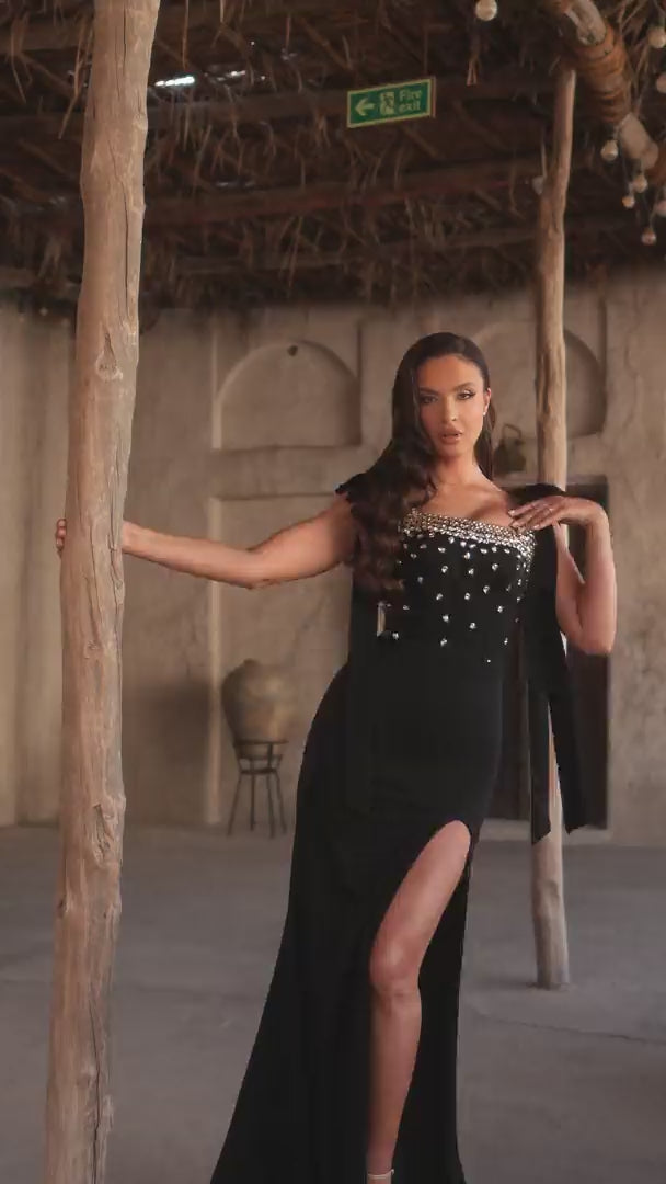 Eleve su elegancia nocturna con el Portia & Scarlett PS25975E, un lujoso vestido de crepe ajustado diseñado para celebrar sus curvas con gracia impecable. Este vestido largo presenta un elegante escote cuadrado y delicadas correas que resaltan sus hombros, mientras que un tren elegante y una abertura atrevida añaden movimiento y drama a cada paso. El exquisito detalle de lazo en la cintura realza la silueta, creando una declaración refinada de sofisticación. Elaborado con una suave tela de crepe, este vestido ofrece un ajuste favorecedor y cómodo que se transiciona sin esfuerzo de la gala a la fiesta posterior. Experimente el atractivo de Portia & Scarlett mientras domina la noche con un glamour atemporal.