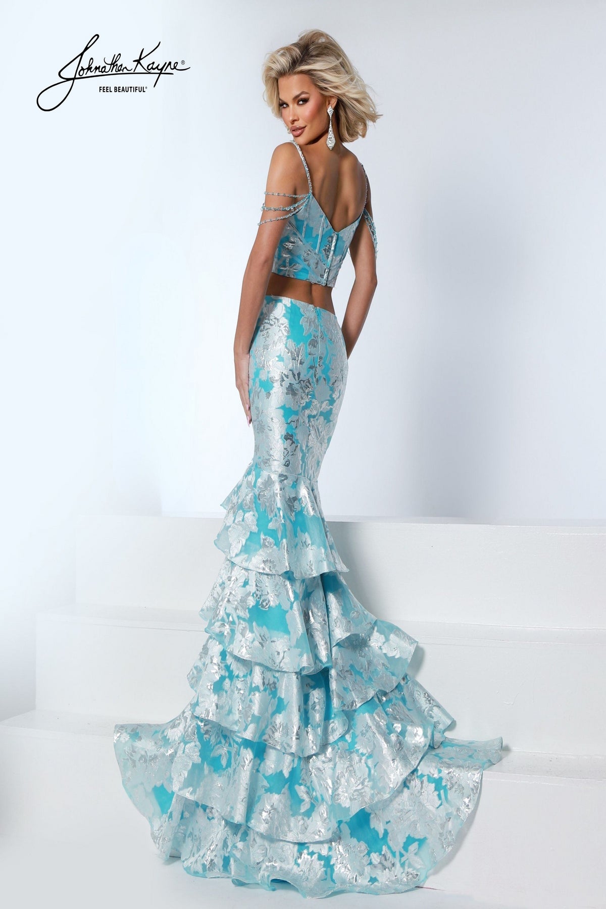 Vestido Johnathan Kayne 3274 de organza brocada Burnout, forro elástico.