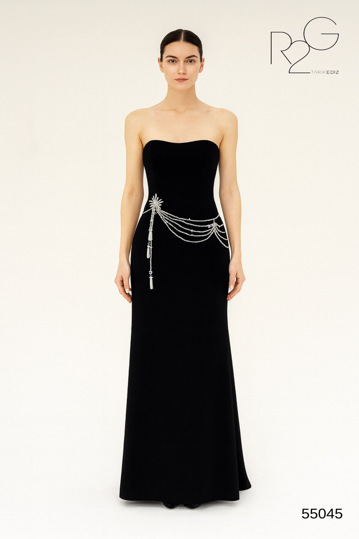 Embrace the enchanting allure of the Tarik Ediz 55045 evening dress, a masterpiece from the renowned 2026 collection. Crafted from sumptuous crepe, this fitted gown elegantly hugs your silhouette, exuding sophistication. The sweetheart neckline delicately frames your décolletage, while the strapless design showcases graceful shoulders, making it an exquisite choice for formal occasions. With a corset detail that provides impeccable support and form, you will feel both confident and beautiful. The long length glides effortlessly with every step, ensuring you radiate glamour as you enter any room. Elevate your style with this captivating dress that redefines elegance.