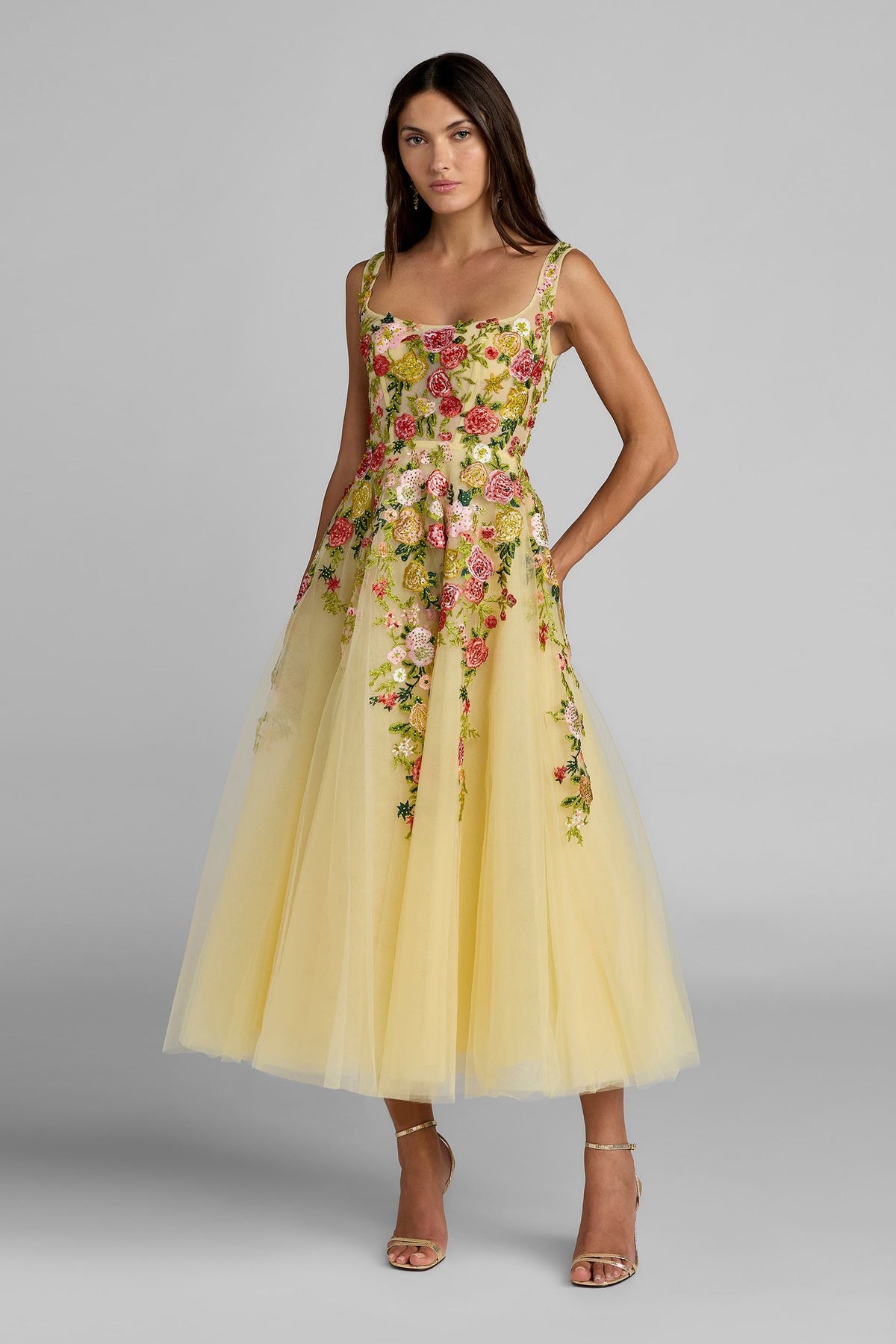 Adoptez l’essence de l’élégance avec la robe Mac Duggal 21294. Cette magnifique robe midi, confectionnée en tulle délicat et coton doux, présente un décolleté cœur romantique et un dos nu séduisant. Ornée de broderies complexes et de découpes raffinées, la silhouette évasée s’écoule avec grâce, créant une aura captivante parfaite pour les soirées élégantes et les célébrations nuptiales. Les détails floraux enchanteurs, sur un fond jaune éclatant, dégagent une sensation de fantaisie et de sophistication, vous assurant d’être le centre d’attention lors de toute réception formelle. Sublimez votre garde-robe avec ce chef-d’œuvre d’artisanat et d’art.