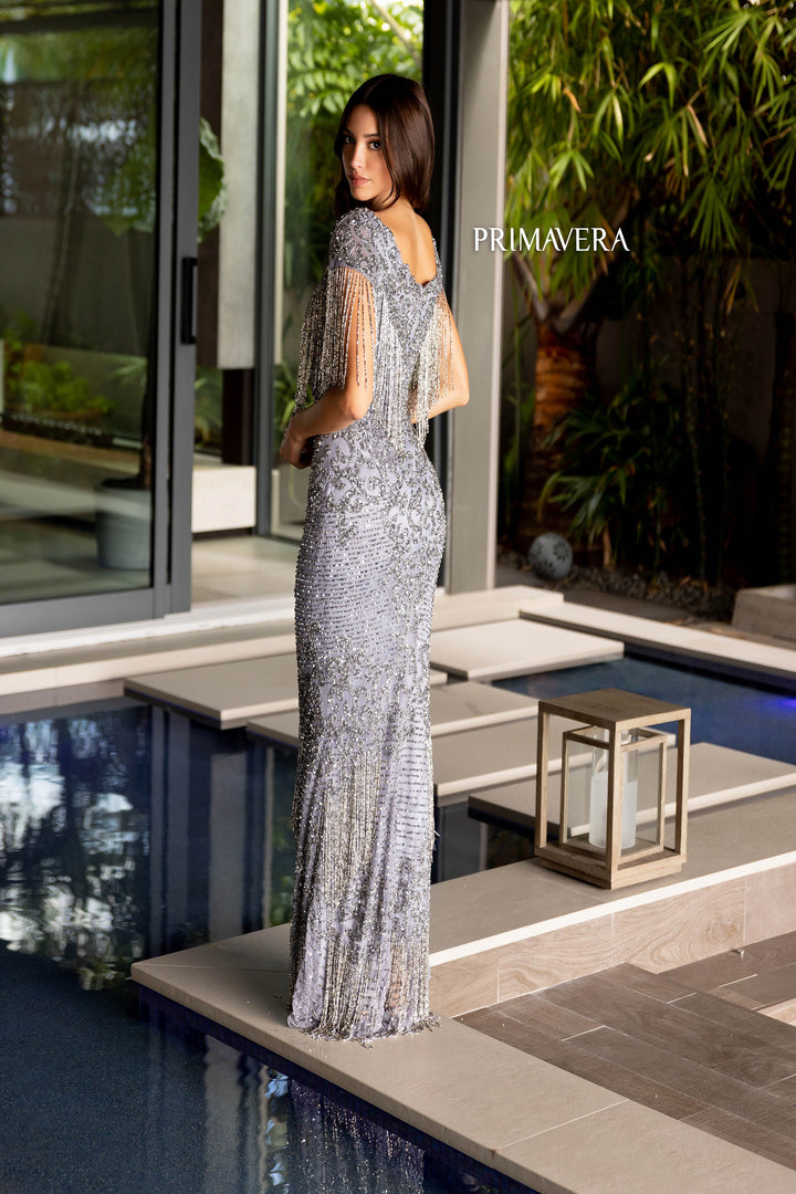 Découvrez le charme envoûtant de la Primavera 12152, une robe de soirée époustouflante conçue pour les moments qui comptent. Cette robe luxueuse de style colonne épouse votre silhouette avec une coupe ajustée, mettant en valeur vos courbes tout en offrant un confort inégalé. Confectionnée dans un tissu orné de perles exquis, la robe capte la lumière à chaque mouvement, offrant un éclat fascinant qui laissera une impression durable. L'encolure en V et les élégantes manches courtes reflètent la sophistication, tandis que les franges ludiques ajoutent une touche de mouvement, faisant de cette pièce une déclaration unique pour la mère de la mariée ou tout événement chic. La fermeture éclair pratique au dos offre un ajustement sans effort, vous permettant d'entrer et de sortir avec grâce. Sublimez votre occasion avec la Primavera 12152, un chef-d'œuvre qui vous assure de briller avec élégance et confiance.