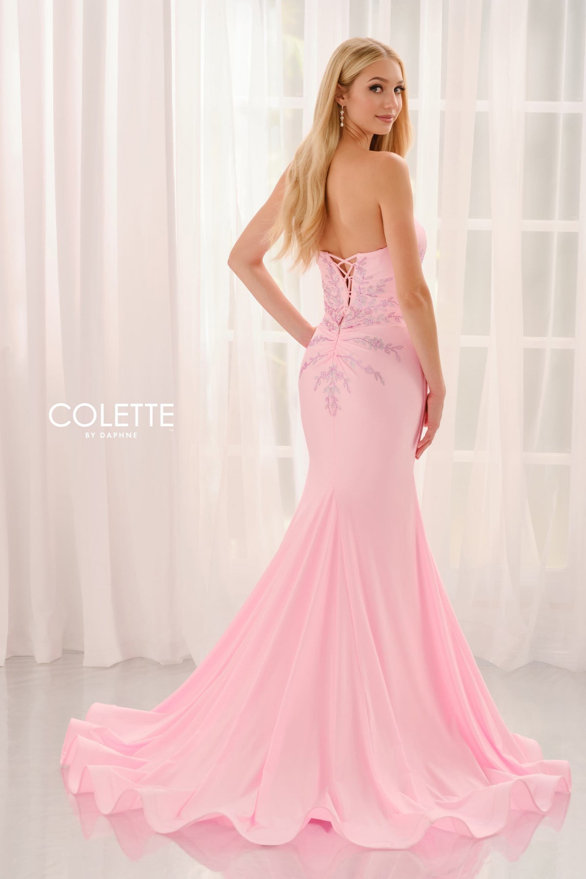 Robe de bal Colette CL6117 en maille stretch, accents pierre Printemps 2026.