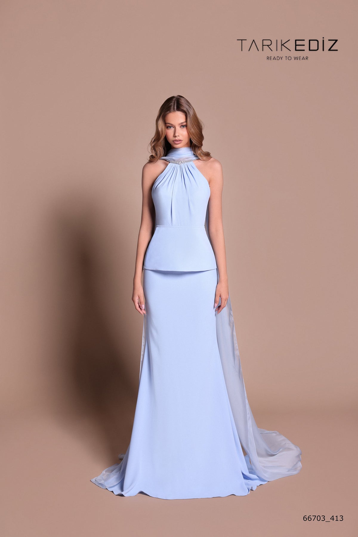 Robe de soirée Tarik Ediz 66703 en crêpe 2026.
