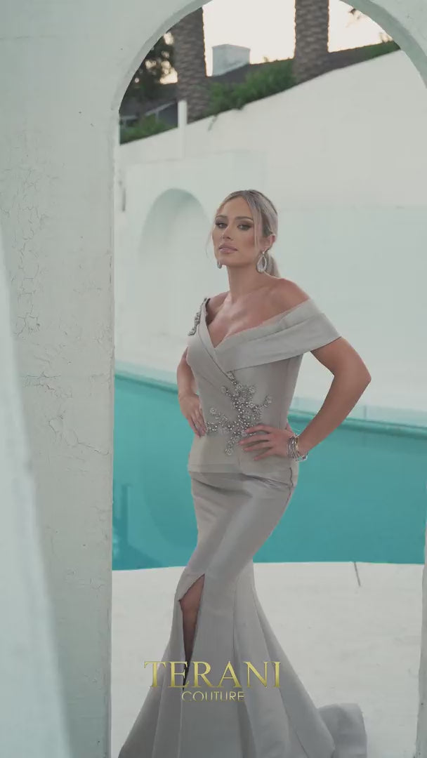 Élevez votre soirée avec la robe longue luxueuse Terani Couture 232M1530, conçue pour captiver à chaque occasion spéciale. Fabriquée en taffetas riche, sa silhouette ajustée embrasse gracieusement vos courbes, tandis que le décolleté épaules dénudées et la fente audacieuse ajoutent une touche d'élégance sensuelle. La traîne dramatique suit sans effort derrière vous, assurant que tous les regards suivent chacun de vos pas. Parfaitement taillée pour la mère de la mariée et les silhouettes grandes tailles, cette robe offre une fermeture éclair arrière sans couture pour un ajustement impeccable. Découvrez le savoir-faire raffiné et la sophistication intemporelle qui transforment votre présence en une déclaration inoubliable de confiance et de beauté.