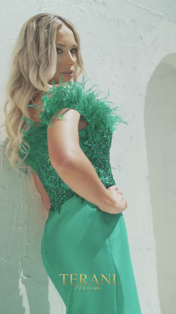 Plongez dans la sophistication raffinée avec la robe de soirée longue Terani Couture 241E2490, conçue pour rehausser votre présence lors de tout grand événement. Fabriquée dans un somptueux tissu Mikado, cette robe ajustée épouse votre silhouette avec un décolleté sans bretelles, dégageant élégance et confiance. Les détails de plumes subtils et la fente audacieuse ajoutent une touche captivante, tandis qu'une fermeture éclair discrète à l'arrière assure un ajustement parfait. Que vous célébriez en tant que mère de la mariée ou que vous assistiez à un gala prestigieux, cette robe promet de vous envelopper dans un confort luxueux et une allure intemporelle, rendant chaque moment inoubliable.
