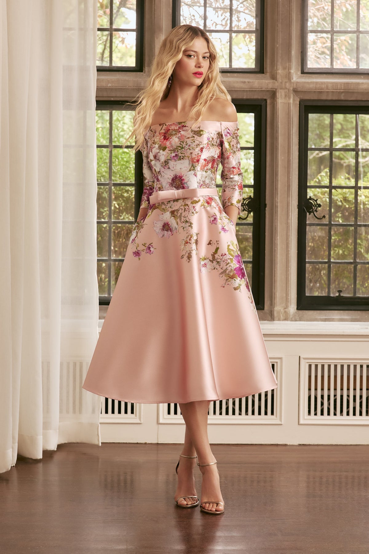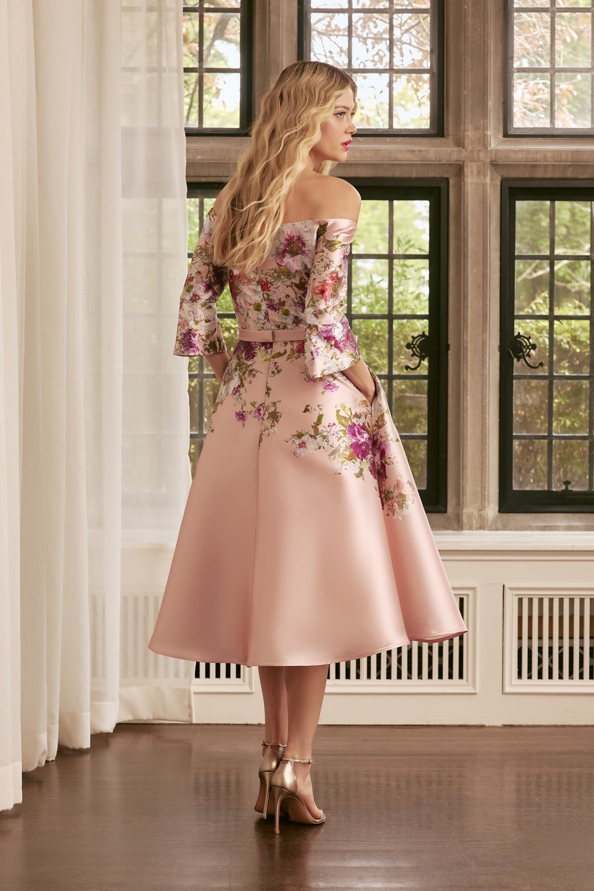 Entrez dans un univers d'élégance avec la robe Frascara 5062, un chef-d'œuvre époustouflant confectionné en soie luxueuse, brocart et satin. Cette robe longueur thé présente un délicat décolleté bardot qui met gracieusement en valeur la clavicule, tandis que les manches trois-quarts ajoutent une touche de sophistication raffinée. Ornée de détails floraux enchanteurs, la silhouette en ligne A s'écoule avec aisance, soulignant votre silhouette avec une grâce naturelle. Complétée par une ceinture chic et des poches discrètes, cette pièce de haute couture est conçue pour la mère de la mariée moderne ou toute soirée formelle. Adoptez le charme du glamour intemporel et affirmez-vous avec une allure digne d'admiration.