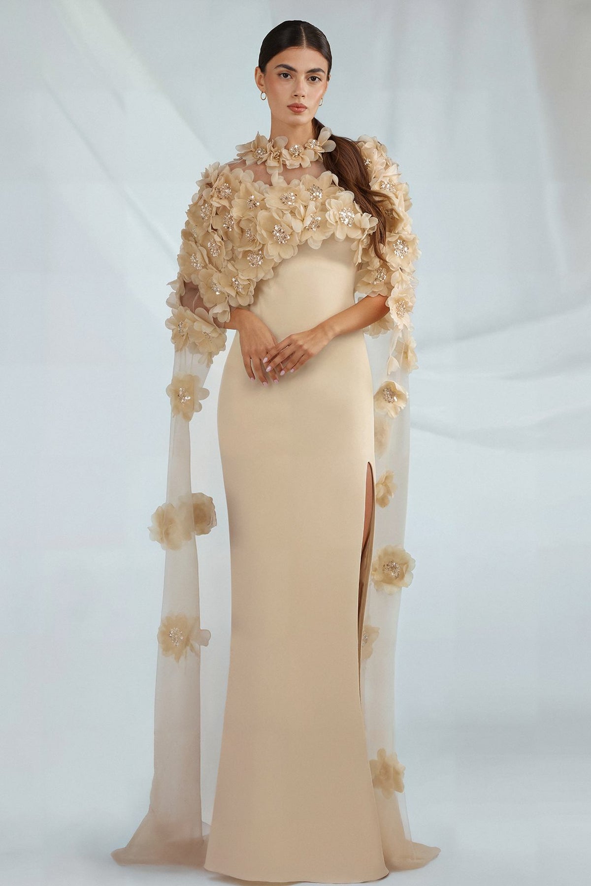 AdoptezunesophisticationenvoûtanteaveclagattiNolliOP-7475,unepiècedéclarationàcouperlesouffleconçuepourladamedistinguee. Cetterobedecocktailcoutureencrêpeluxueuxépuisevoscourbesmagnifiquementtoutenémanantunegrâceeffortless. Leconceptionàmanchecapeimpressionnanteajouteuntouchéthéré,parfaitpourcesmomentsextraordinairescommeunecélébrationdelamèredelamarieéoudesévénementsdehautniveau. Savourezlesdétailsflorauxexquisquienrichissentlarobe,associésàunfendudaringquimettensilhouetteenvaleur. Ledosprésenteunfermetureéclaircachéepourunefinitionparfaite. EnfilezlaGattiNolliOP-7475etvoyezcommentelletransformevotresoiréeenuneexpérienceinoubliable.
