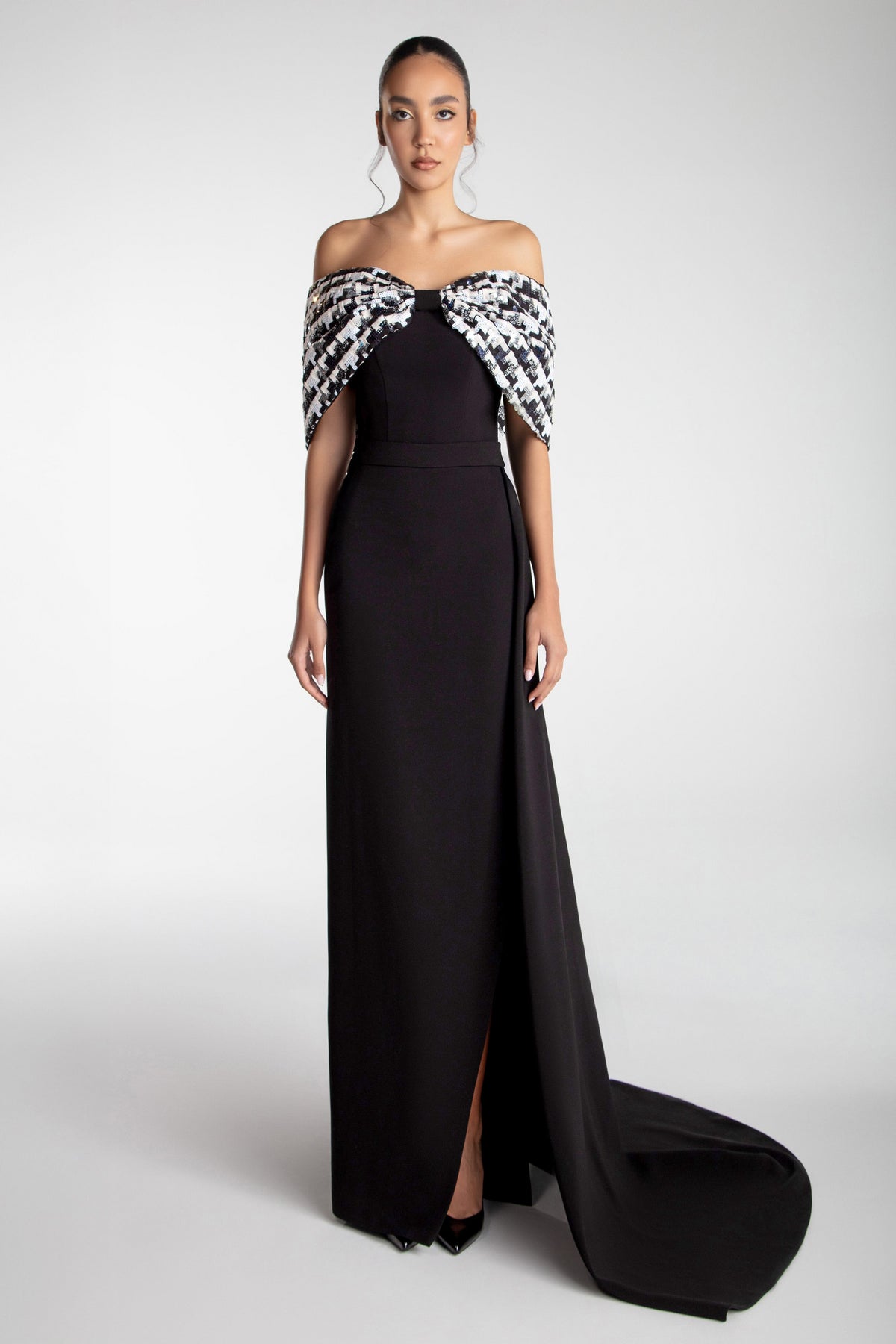 Sublimezvotretenuedusoiravecl'incroyableGattiNolliOP-7738.Cetterobelongueexquiseestconçuedansducrêpe'luxueux,voilàvotrecorpsdansunesontexturedouceetraffinéequise'ajuste'magnifiquement'contrevotresilhouette.Conçuepourlamèredelamarieéediscerne'oupourtoutecélébrationcouture,sonstyleajustévousassuredefairetournerlesregardsalorsquevousglissezdanschaque'événement.L'encolurebustierimpressionnantemetenvévidencevotreclaviculaire,tandisquelesmanchesépaulesdénudéesapportentune touchederomantisme.Un'élégant'surjupeavecunefendueaudégagéajouteune'élémentdedrame,équilibrantparfaitementsophisticationetcharme.Fermez-lefacilementgrâce'asontdos'àglissière'élégant,etpréparez-vous'arayonnerd'élégance toute la soirée.