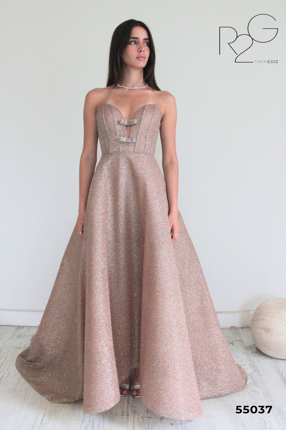 Elevate your evening wardrobe with the captivating Tarik Ediz 55037, a breathtaking A-Line gown that radiates elegance and sophistication. Crafted from luxurious glitter fabric, this enchanting dress shimmers under the soft glow of candlelight, ensuring you stand out at every special occasion. The sweetheart neckline and strapless design highlight your neckline and shoulders, while the choreographed corset lace-up back adds a touch of drama, contouring your silhouette to perfection. Imagine stepping into the spotlight, the long skirt flowing gracefully with each step, as the fabric glistens, embodying pure glamour. With each detail meticulously designed, the Tarik Ediz 55037 is not just a dress; it’s an experience that transforms your evening into an enchanting affair. Indulge in this exquisite piece that promises to be the highlight of your collection and a staple for unforgettable moments.
