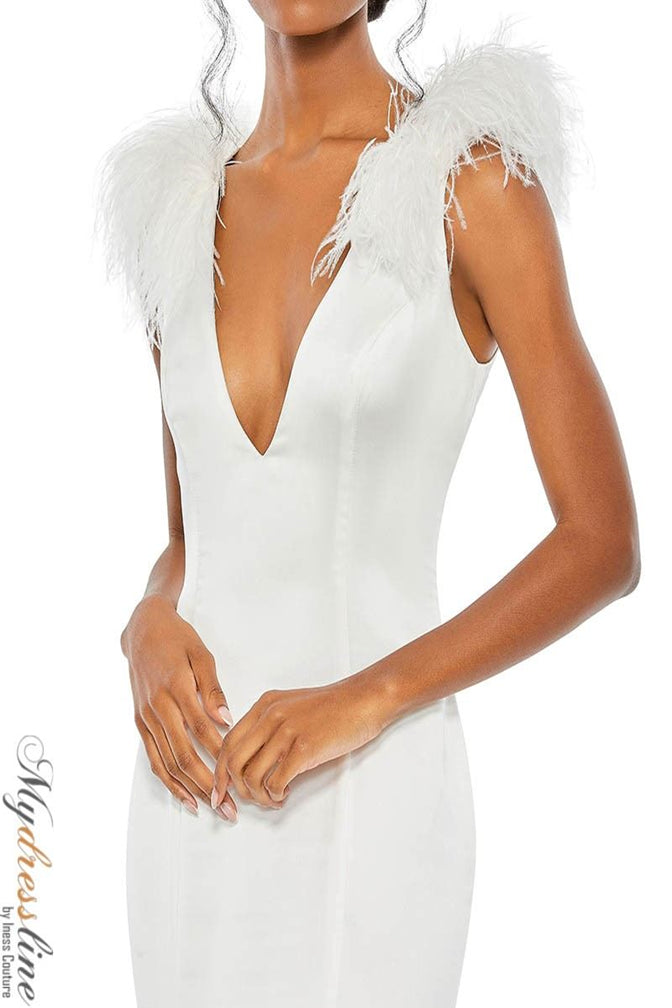 Entrez dans la lumière avec le Mac Duggal 68137, un cours magistral d'élégance conçu en satin somptueux. Cette longue robe sirène sculpte votre silhouette avec un décolleté plongeant et un design sans manches qui rayonne de confiance et de séduction. Le train dramatique de la robe, délicatement orné de plumes, crée un mouvement éthéré qui captive tous les regards alors que vous glissez à travers la pièce. La fermeture éclair arrière lisse assure un ajustement impeccable, vous permettant de commander la soirée avec aisance. Conçu pour ceux qui désirent un glamour intemporel, cette pièce exquise transforme toute occasion en une expérience époustouflante.