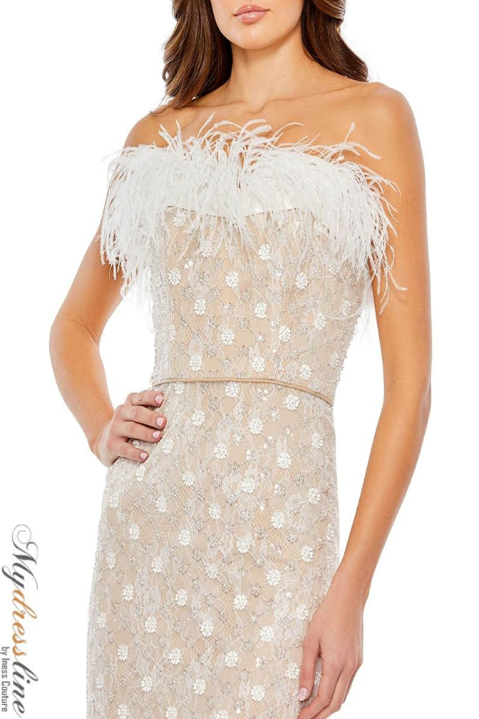 Découvrez l'allure du glamour raffiné avec la robe de soirée en dentelle Mac Duggal 68140, conçue pour rehausser votre présence lors de toute soirée élégante. Cette robe colonne sans manches ni bretelles présente une silhouette ajustée qui met en valeur votre silhouette de manière harmonieuse, tandis que la délicate garniture en plumes apporte une touche inattendue de fantaisie et de sophistication. La longueur midi et la fente subtile offrent un équilibre gracieux entre prestance et sensualité moderne, complétées par une fermeture éclair lisse dans le dos pour un ajustement impeccable. Conçue pour les moments où chaque détail compte, cette création exquise vous invite à incarner la confiance et la beauté intemporelle.