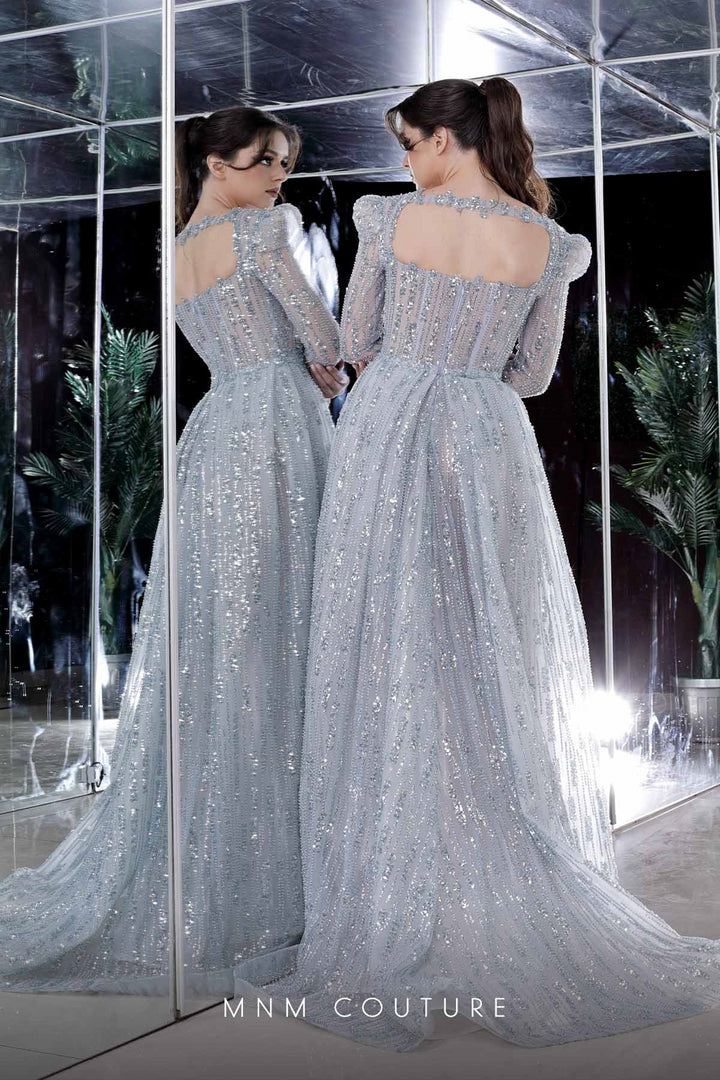 Plongez dans la splendeur raffinée avec le MNM Couture K3980, un chef-d'œuvre conçu pour transformer votre soirée spéciale en une déclaration inoubliable. Fabriquée en tissu perlé, cette longue robe ajustée à colonne présente un élégant décolleté carré et des manches longues élégamment rembourrées qui sculptent une silhouette posée. La jupe oversize dramatique coule sans effort, ajoutant des couches de mouvement et de grandeur, tandis que la fermeture éclair dissimulée à l'arrière assure une finition impeccable. Que vous embrassiez votre rôle de mère de la mariée ou assistiez à une soirée couture, cette robe vous enveloppe dans une sophistication intemporelle et un artisanat luxueux, rehaussant votre présence à chaque pas.