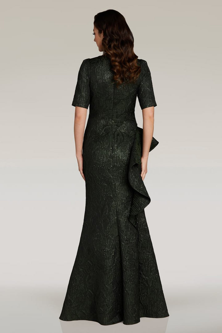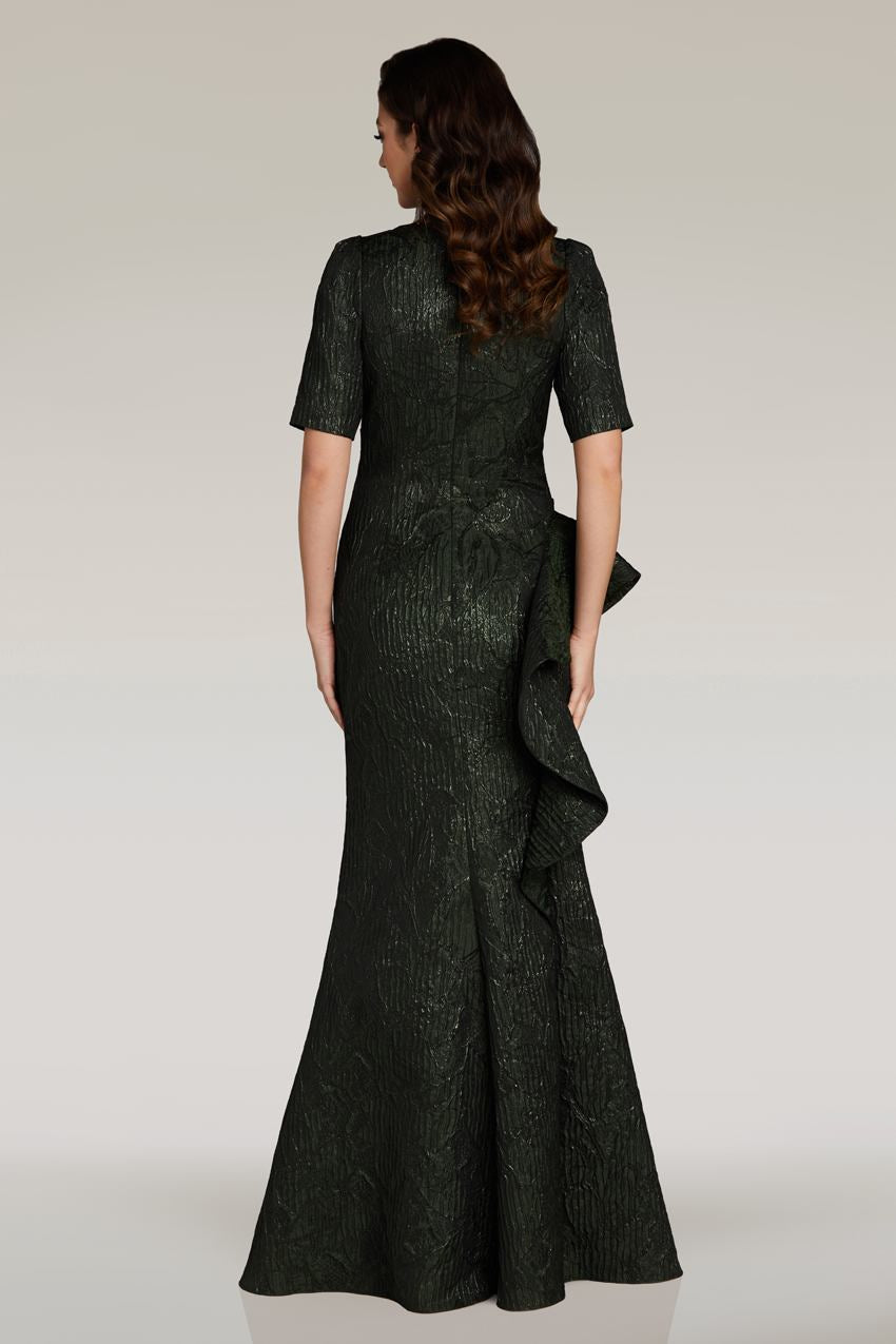 Plongez dans l'élégance intemporelle avec la Feriani Couture 18355, une création magistrale de la Collection Soirée Printemps 2025 conçue pour sublimer vos occasions les plus spéciales. Fabriquée dans un luxueux jacquard, cette longue robe ajustée contourne votre silhouette avec grâce tout en offrant un confort raffiné. L'encolure bateau et les manches trois-quarts créent un cadre sophistiqué, complété par des volants délicats qui ajoutent une touche de mouvement romantique. Une fente audacieuse renforce l'attrait de la robe, vous permettant de vous déplacer avec confiance lors de tout événement. La fermeture éclair discrète dans le dos assure un ajustement impeccable, faisant de cette robe un choix impeccable pour les soirées ou comme une tenue raffinée pour une mère de la mariée. Laissez-vous séduire par la discrète puissance de l'élégance et de l'admiration que cette robe commande.