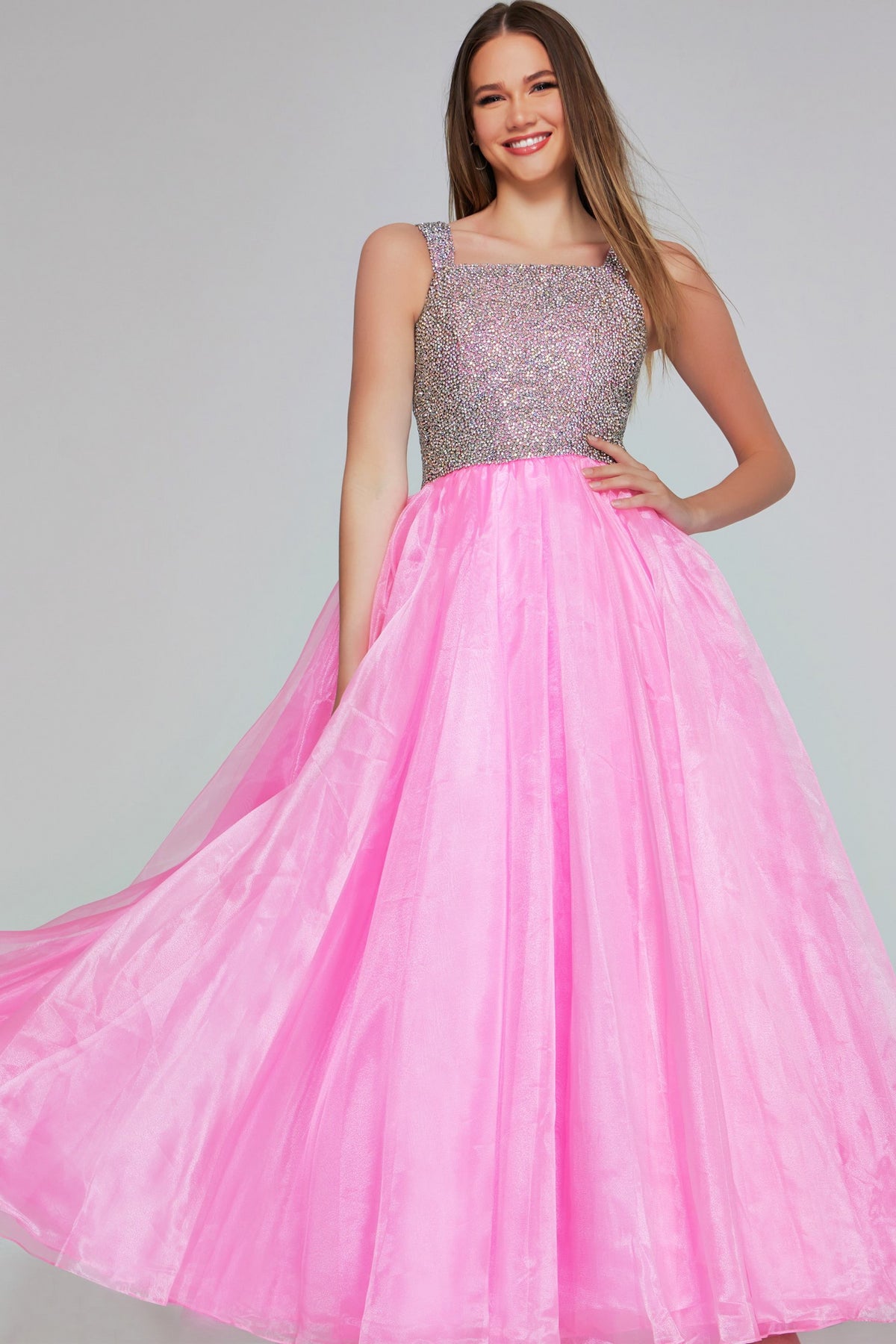 Entrez dans l'élégance raffinée avec le Jovani K38261, un chef-d'œuvre de la collection automne 2024. Fabriqué dans une délicate organza, cette robe de bal midi vous enveloppe dans une légèreté éthérée tandis que les plis expertement taillés ajoutent une dimension sculpturale qui flatte chaque silhouette. L'encolure carrée sophistiquée associée à des bretelles fines encadre votre décolleté avec une pose gracieuse, tandis que la fermeture éclair discrète à l'arrière assure un ajustement sans couture qui bouge avec vous sans effort. Que vous assistiez à un gala ou à une soirée chic, cette création Jovani transforme votre présence en une déclaration artistique de luxe intemporel et de glamour moderne.