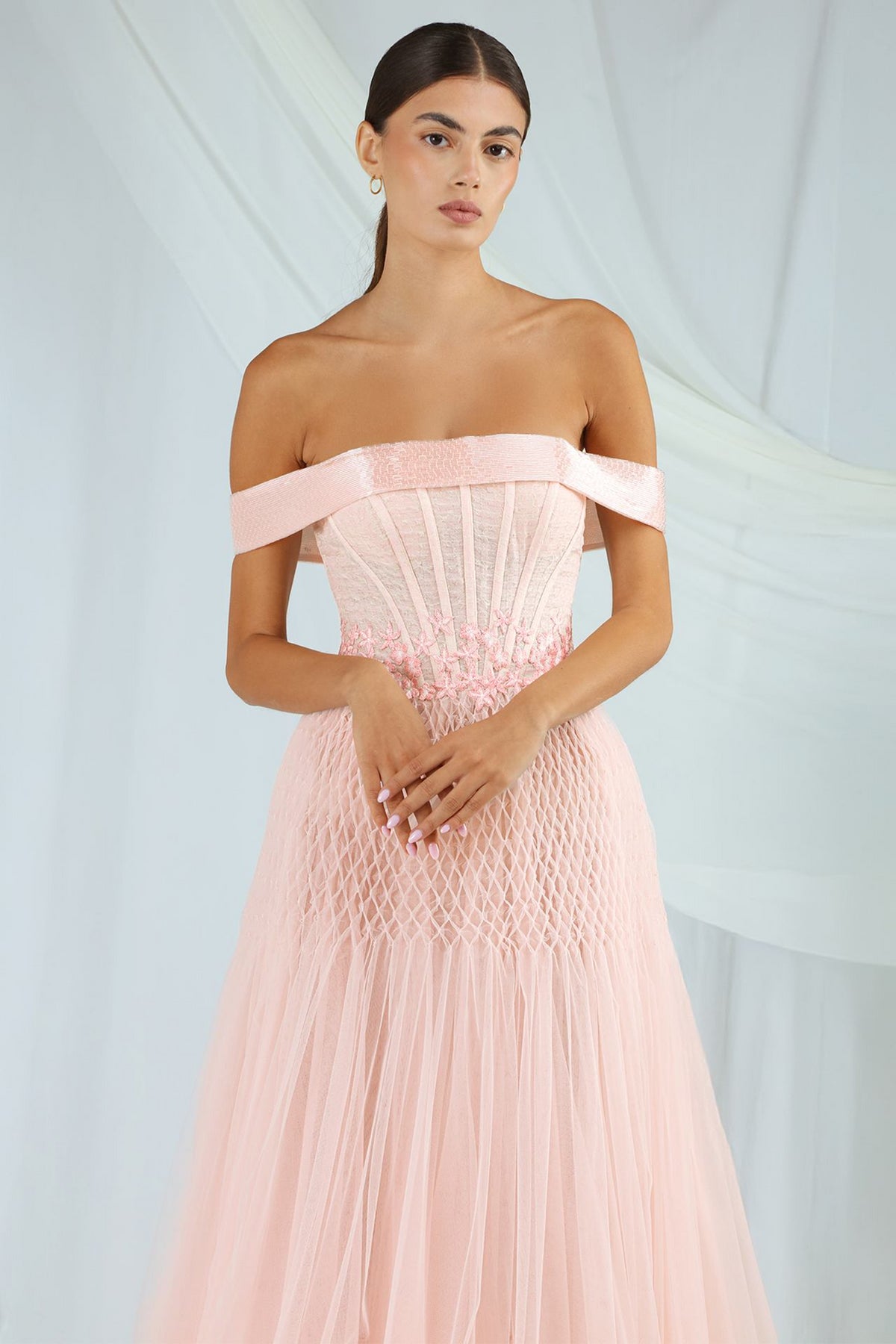 Élevez votre garde-robe de soirée avec l'exquise Gatti Nolli OP-7281, une robe trapèze époustouflante qui incarne l'élégance et la sophistication. Confectionnée en tulle délicat, cette œuvre d'art présente un design plissé enchanteur qui tombe gracieusement, créant une silhouette éthérée. L'encolure bustier et les manches dénudées dégagent une romance, vous permettant de révéler juste ce qu'il faut de peau tout en assurant un confort et un maintien optimaux. Le détail du corset serre la taille, mettant en valeur vos courbes naturelles et assurant un ajustement parfait. Avec une longueur longue et luxueuse et une fermeture éclair discrète au dos, cette robe est parfaite pour les événements de haute couture, où vous serez le centre de l'attention. Découvrez l'art d'un savoir-faire exquis et d'un design luxueux avec la Gatti Nolli OP-7281, un ajout intemporel à votre collection.