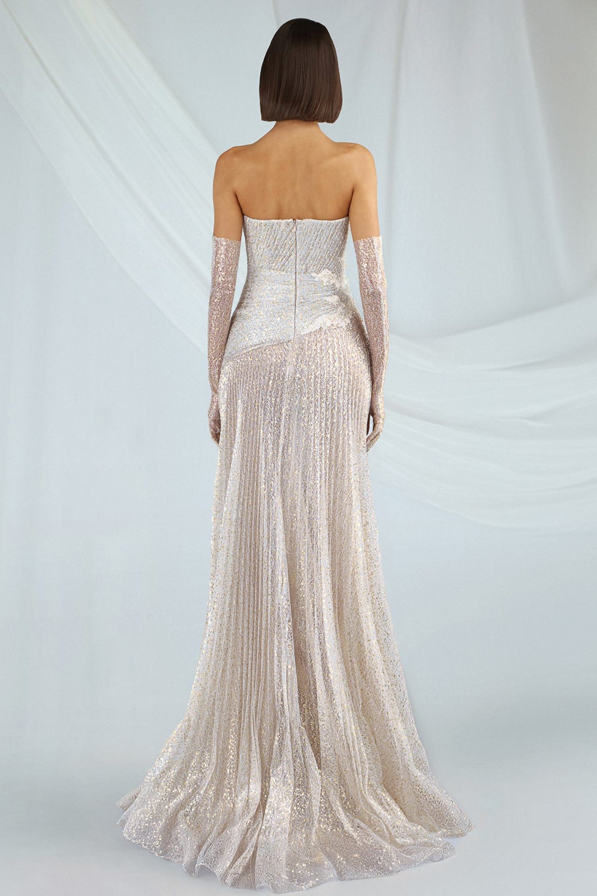 Sublimezvotretenuedesoiréeavecl'exquisGattiNolliOP-7336,unéclatantdémonstrationdel'élégancecouture.Conçuendutellefin,ceintéetlongrobeépousetonsilhouetteavecdélicatesse,mettantenvaleurvotrebelletenaturelletoutentoffrantuneimpressionéthérée.L'encolurebustierencadreélégammentvotredécolleté,tandisquel'ondulationcomplexeduplicapturelumièreàchaquemouvement.Unefendueaudacieuseajouteuncharmeinattendu,garantissantquevousbrillerezaveconfianceàtoutévénement.Lafermetureéclairarrièreéléganteoffreunefinitionparfaite,facilitantl'habillageetfaisantdecechoixunindispensablepourcesoccasionsspécialesoùvoussouhaitezlaisseruneimpressiondurable.Offrez-vousle luxe de Gatti Nolli et attirez les regards sans effort.