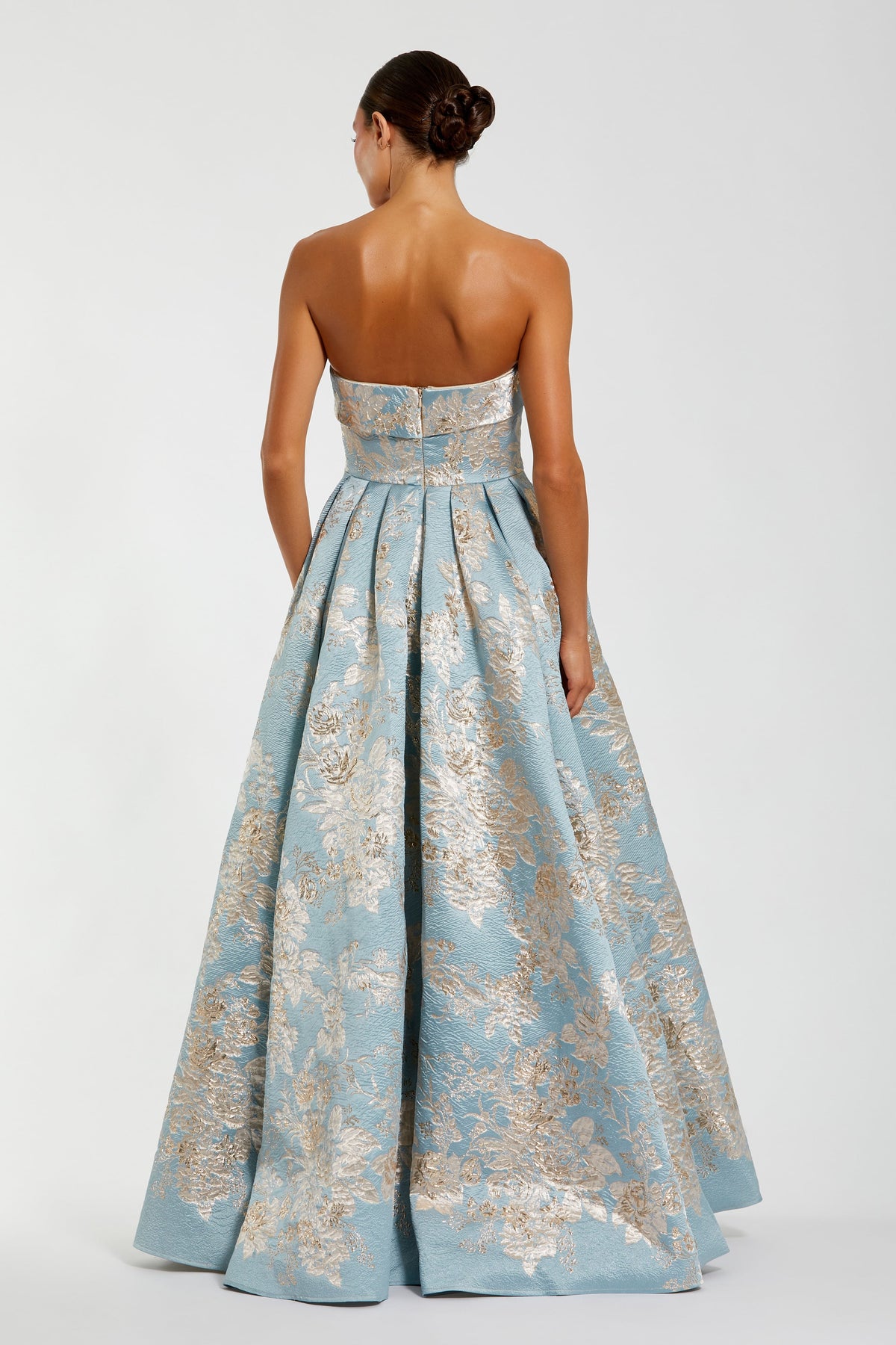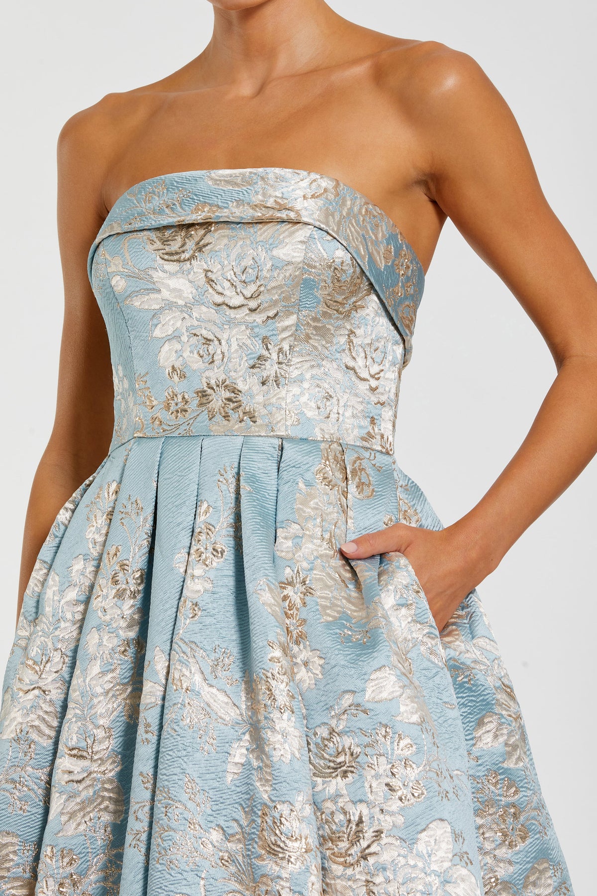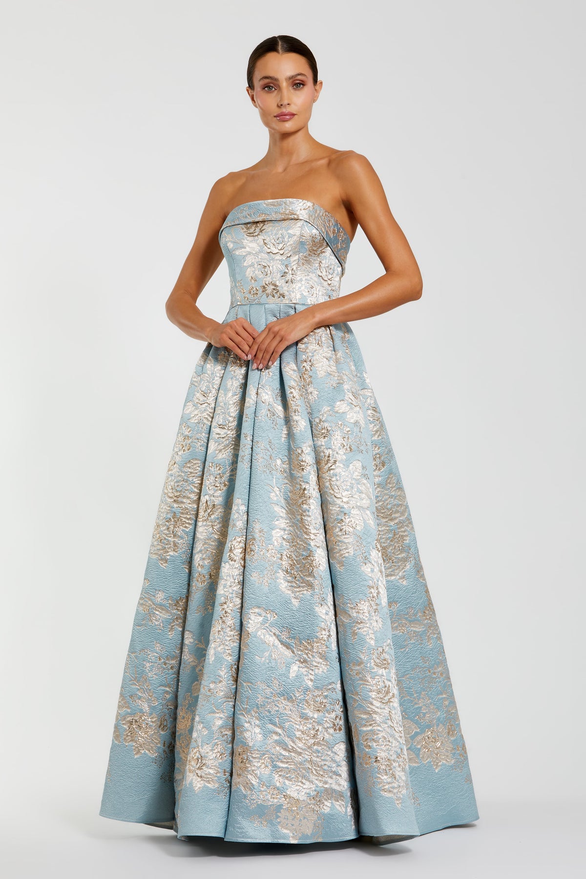 Entrez dans un univers d’opulence avec la robe de soirée Mac Duggal 21144, un chef-d’œuvre époustouflant confectionné en somptueux brocart. Cette magnifique robe de bal sans bretelles présente une silhouette longue jusqu’au sol qui se drape avec grâce pour créer une aura envoûtante. Ornée de broderies délicates, la robe capte la lumière à chaque mouvement, tandis que la fermeture éclair au dos garantit un ajustement parfait. Parfaite pour les occasions formelles telles que les galas et les bals de fin d’année, cette robe est conçue pour la femme exigeante qui souhaite faire une déclaration inoubliable. Adoptez l’élégance et la sophistication avec cette pièce intemporelle qui dégage un charme éclatant.
