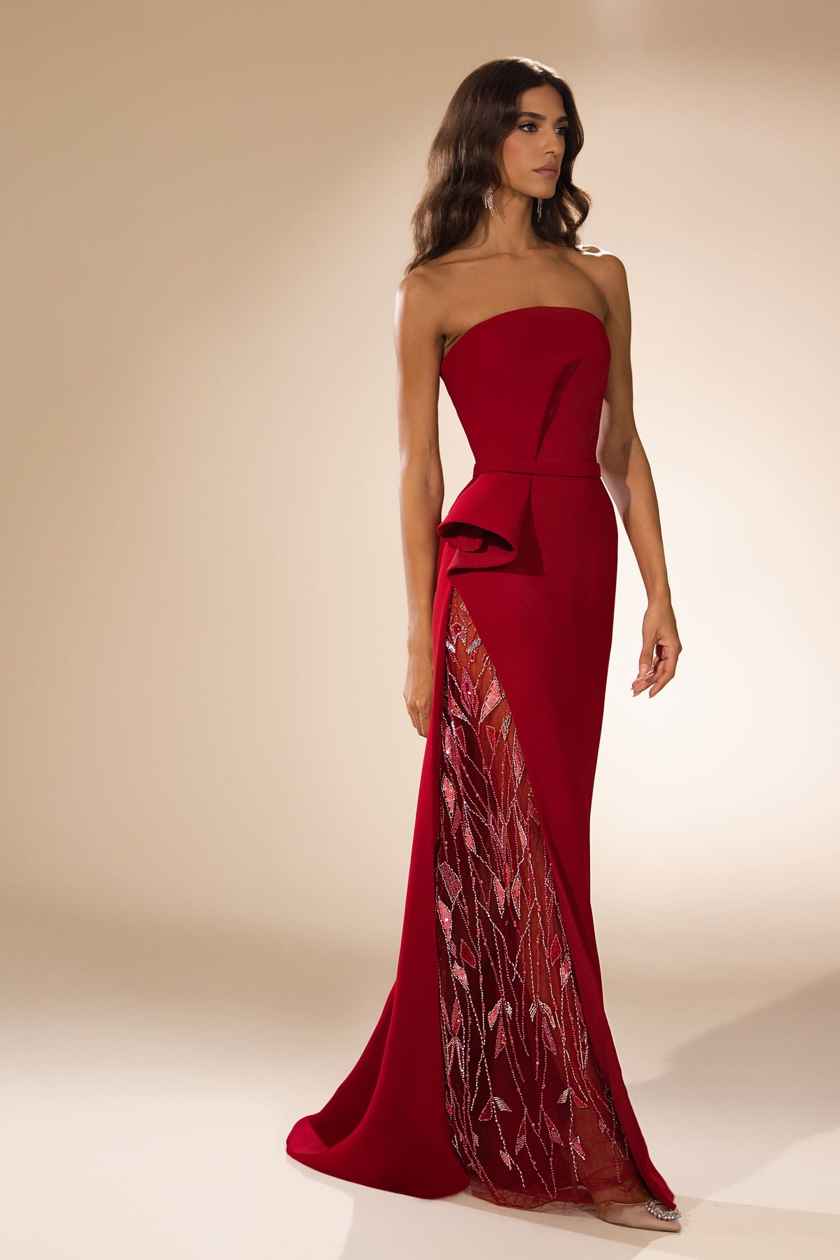 Elevate your evening elegance with the Abdo Aoude SS26-22 gown, a masterpiece crafted from luxurious silk and ethereal organza. This floor-length creation features a captivating sweetheart neckline and a sultry strapless design, exuding sophisticated allure. The exquisite beading dances with every movement, while a daring slit and a graceful mermaid silhouette enhance your figure, making a striking statement at any formal affair. With its refined zipper back and artful detailing, this gown encapsulates the essence of couture luxury, ensuring you command attention and admiration as you glide through the night.