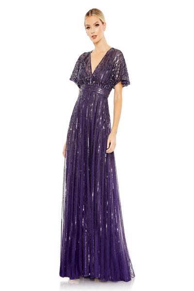 Step into the spotlight with the Mac Duggal 10868, a masterful evening dress designed to elevate your most memorable occasions. Crafted from shimmering sequin fabric and meticulously embellished with delicate beading, this A-line silhouette drapes gracefully to the floor, creating an elegant and captivating presence. The plunging neckline and chic short sleeves frame your figure with refined allure, while the discreet zipper back ensures a flawless fit tailored just for you. Whether you are celebrating as a mother of the bride or attending a distinguished evening event, this dress promises to envelop you in luxurious glamour that leaves a lasting impression.