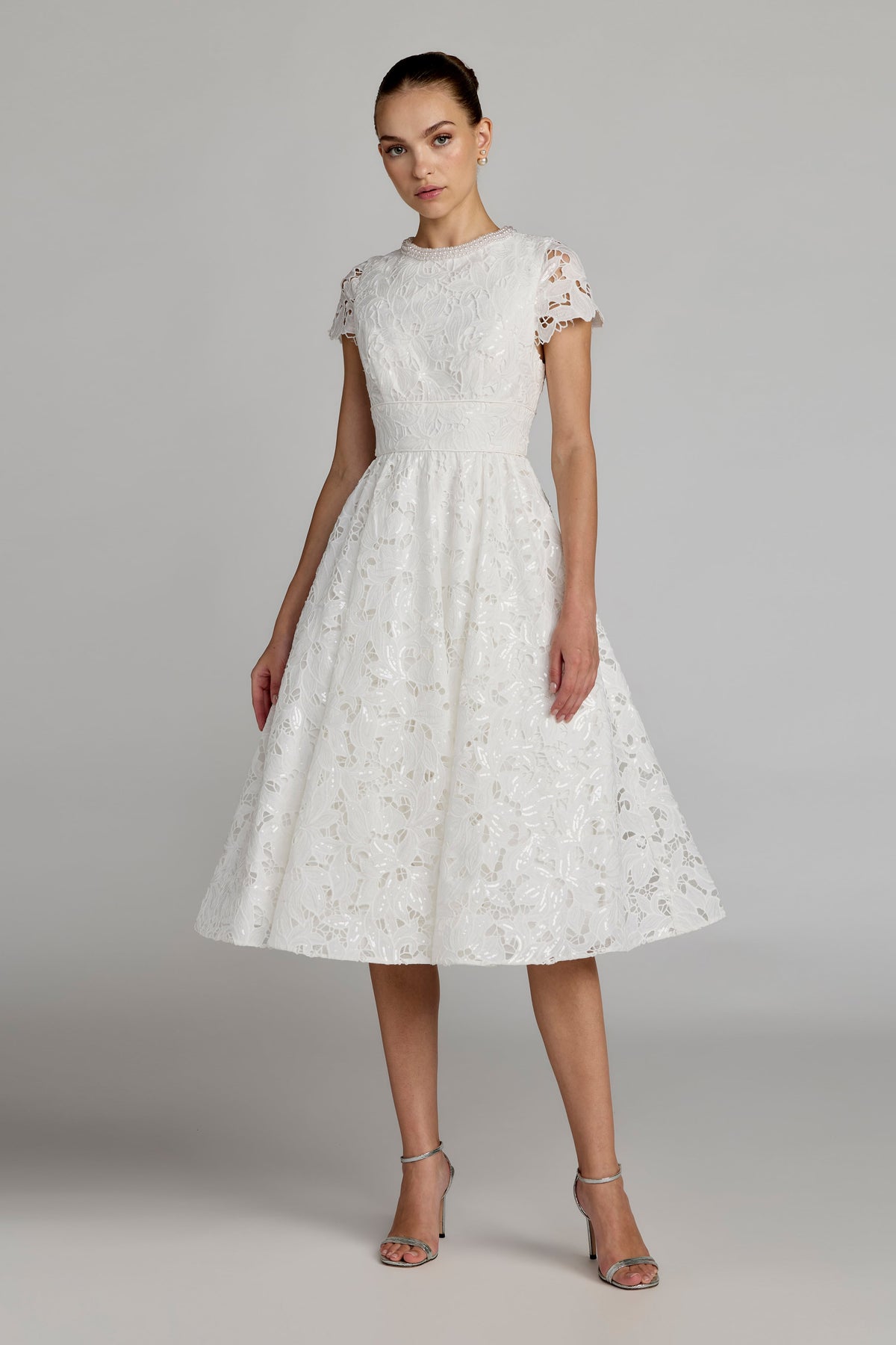 Step into a realm of elegance with the Mac Duggal 56324 dress, an exquisite creation that effortlessly embodies grace and sophistication. Crafted from delicate lace and soft cotton, this knee-length A-line silhouette features intricate ruching and enchanting embroidery, ensuring you stand out at any formal occasion. The round neckline and short sleeves exude timeless charm, while the zipper back adds a modern touch of convenience. Perfect for bridesmaids, wedding guests, or any semi-formal gathering, this dress captures the essence of bridal beauty and refinement, making it a must-have in your luxury wardrobe.