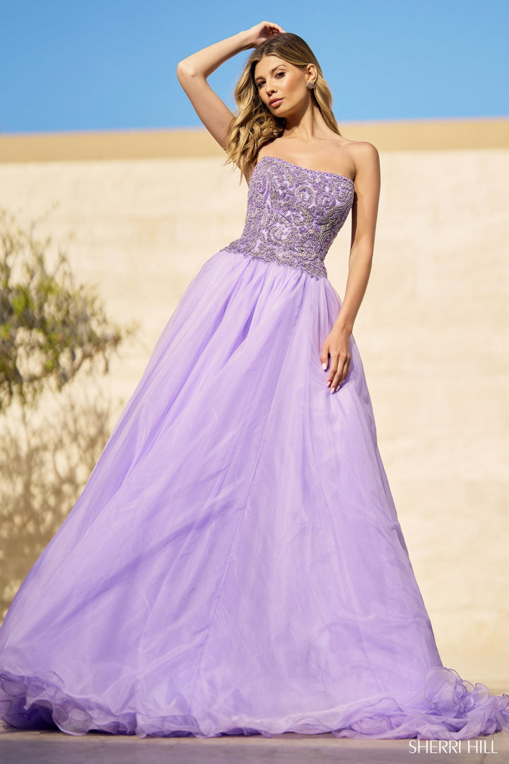 Step into the spotlight with the Sherri Hill 55947 ball gown, a masterpiece crafted for the most discerning evening affairs. This strapless couture dress envelops you in layers of soft, ethereal tulle adorned with delicately beaded stones that catch the light, adding a subtle shimmer to your every movement. Its elegant square neckline frames your décolletage with timeless sophistication, while the long, flowing silhouette embodies grace and grandeur. Designed with a discreet zipper back for a seamless fit, this gown elevates your presence effortlessly. Experience the unparalleled craftsmanship of Sherri Hill and make a breathtaking entrance that lingers in memory.