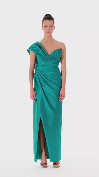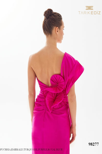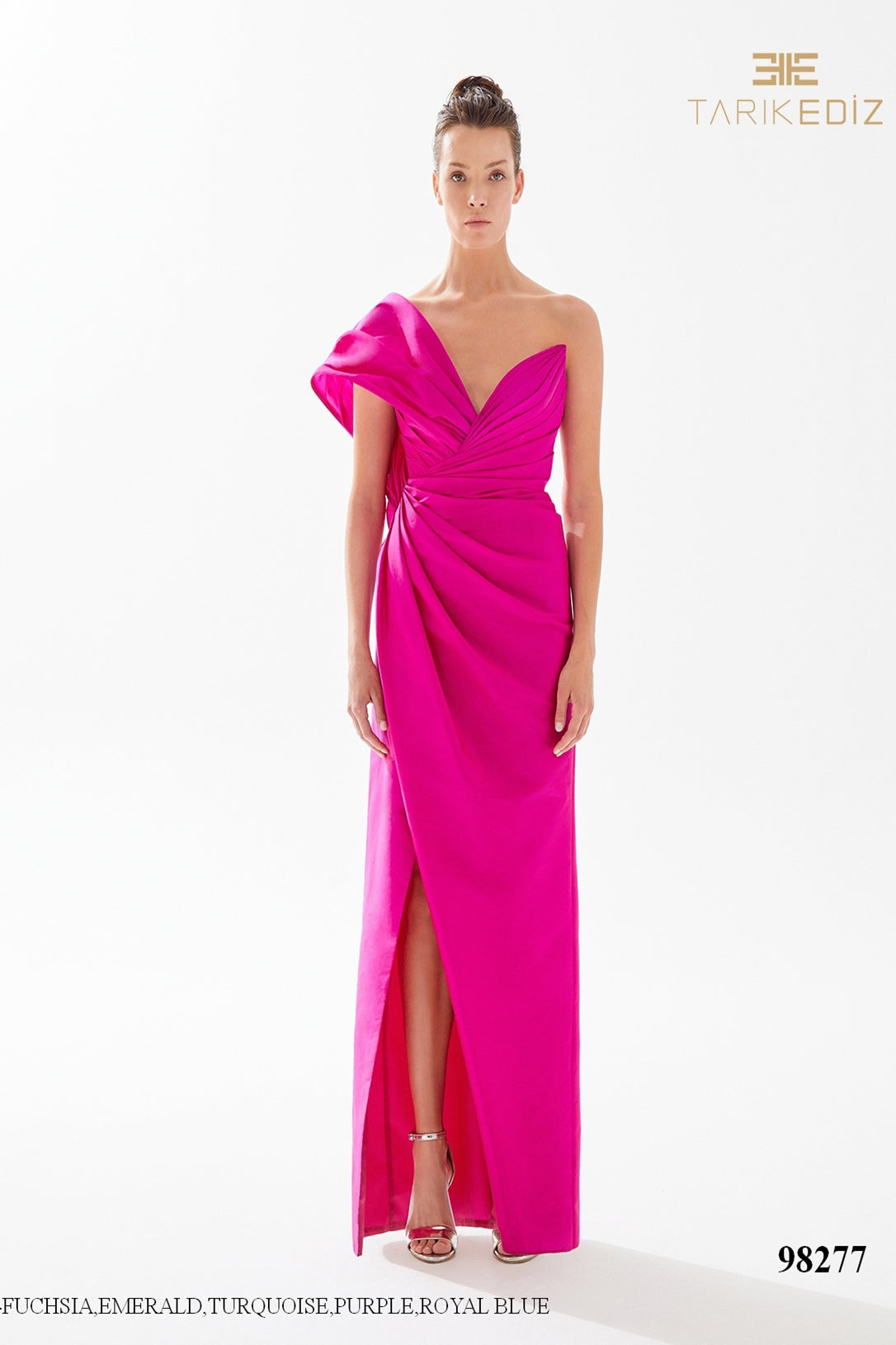 Elevate your evening presence with the Tarik Ediz 98277, a stunning embodiment of refined elegance. Crafted from lustrous taffeta, this long column dress gracefully contours your silhouette with exquisite ruching that enhances every curve. The one-shoulder neckline and sleeveless design invite a modern yet timeless allure, while the daring side slit adds a hint of seductive movement as you walk. Perfect for sophisticated evenings, its sleek zipper-back ensures a flawless fit, making you feel effortlessly confident and radiant at every gala or formal event. Experience unparalleled glamour with this exquisite Tarik Ediz masterpiece designed to captivate.