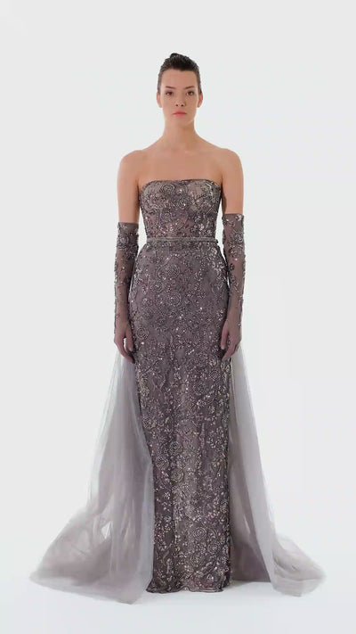 Step into the spotlight with the Tarik Ediz 98312, a masterpiece of evening elegance designed to captivate. This long, column-style dress boasts intricately embroidered fabric that gently envelops you with refined texture and timeless romance. The strapless neckline reveals your shoulders with grace, while the dramatic overskirt adds a layer of sophisticated flair and movement that transforms your silhouette. A sleek zipper at the back ensures a flawless fit, embracing your curves flawlessly. Whether attending a gala or an exclusive soirée, this sleeveless creation promises to elevate your presence, allowing you to experience the allure and confidence that only Tarik Ediz can deliver.